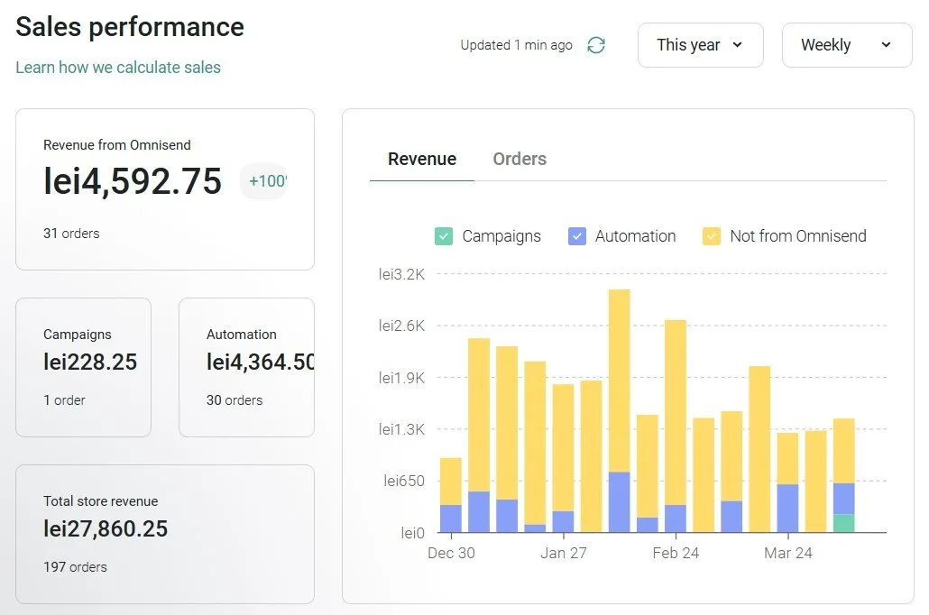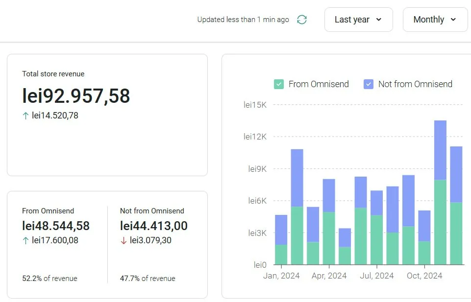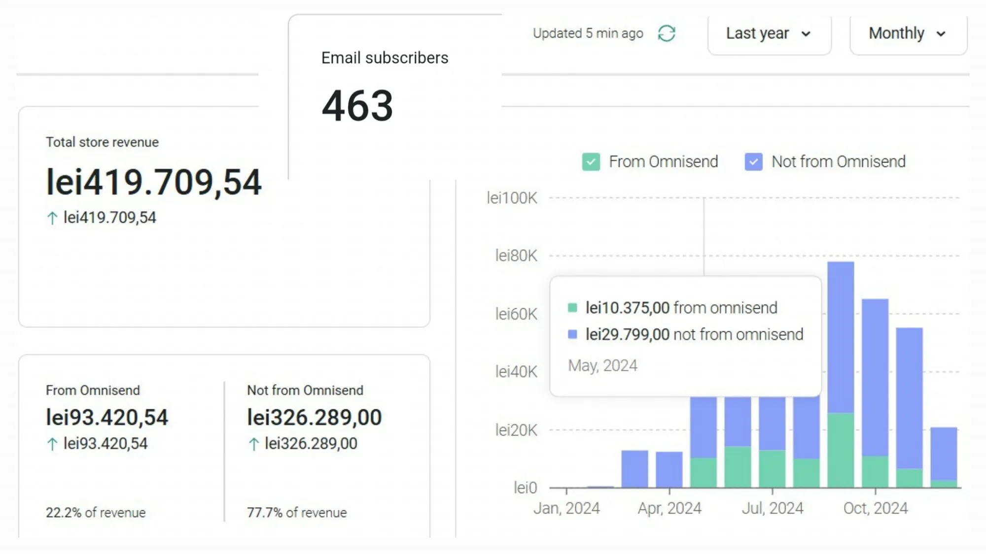 Marketoros ne-a adus 21.000 lei pe luna doar din email, fara sa platim nimic in plus pe reclame. Cel mai profitabil canal pe care il avem.
